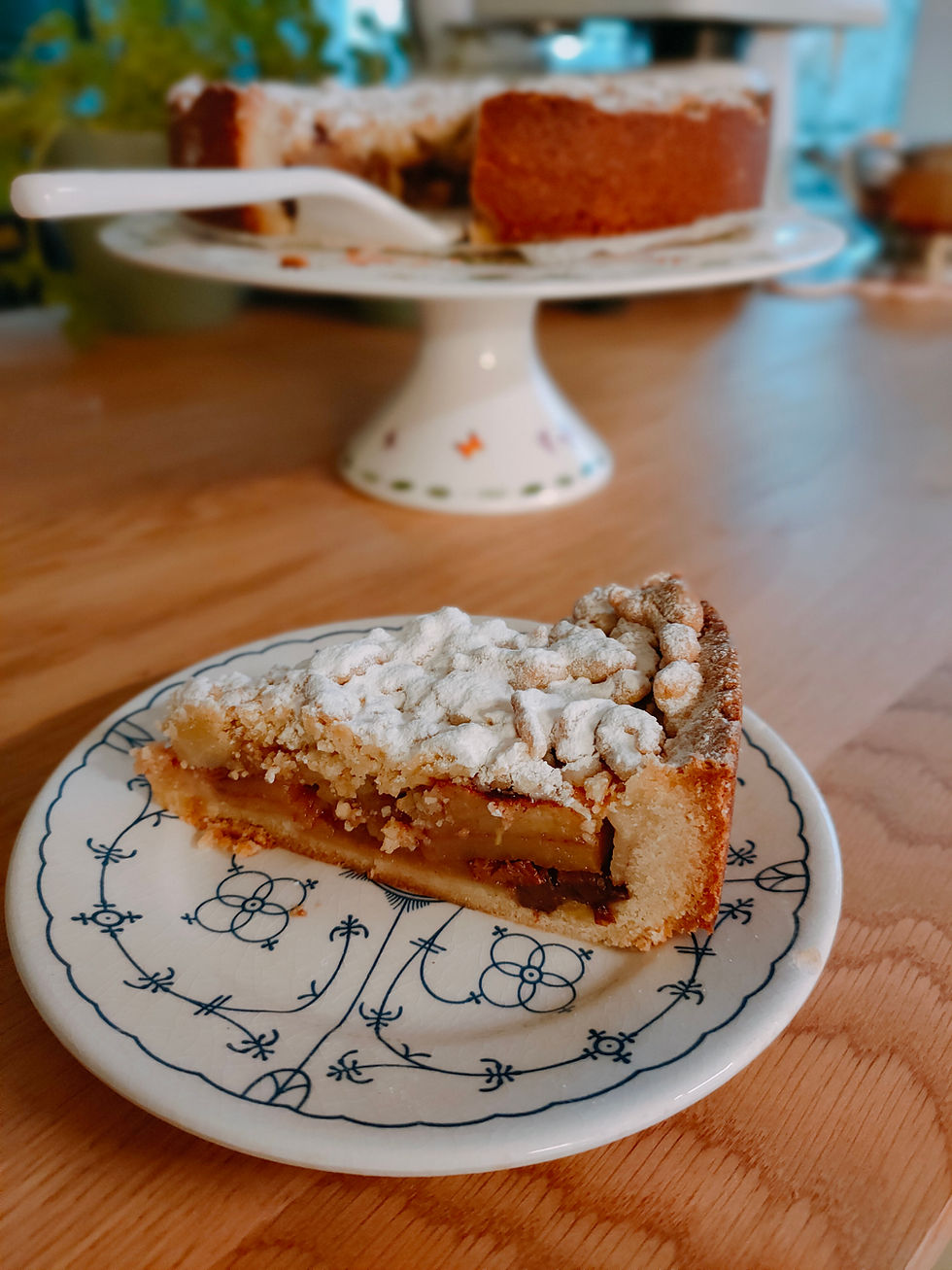 Een variatie op de vertrouwde appeltaart, geen rijgwerk- maar verkruimeld deeg.